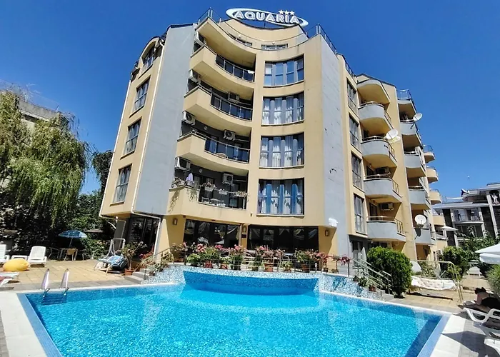 Dotato di Wi-Fi, un ascensore e un distributore automatico, Vakanzionno Studio Aquaria, di 46 m^2, si trova a Sunny Beach, a 25 km dall'aeroporto di Burgas. A una distanza di 2 km dal Museo archeologico, l'appartamento comprende una piscina esterna e una piscina all'aperto.